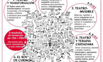 El ciclo de formación “PARTICIPAR ACTUANDO” recoge una serie de cursos de formación en Teatro para la Transformación personal y colectiva, a la vez complementarios e independientes. La propuesta es formar un grupo continuado en el tiempo, que pueda seguir la integralidad de la formación, dejando abierto cada módulo a nuevos/as participantes. Los cursos empezarán en noviembre y seguirán a lo largo del curso 2016-2017, con seis talleres de formación […]