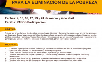 INTRODUCCIÓN La ONGD ASAD lanza el curso Participación ciudadana para la eliminación de la pobreza de 40h semipresenciales. Consta de 6 sesiones presenciales que se completarán con trabajo práctico on-line. Las sesiones presenciales se realizarán en el Rey Chico. OBJETIVOS Trabajar en grupo la base teórico-ética, metodologías, técnicas y herramientas para poner en marcha procesos participativos. Dotar de principios, estrategias y técnicas de participación para la gestión pública, asociativa y cotidiana. Trabajar […]
